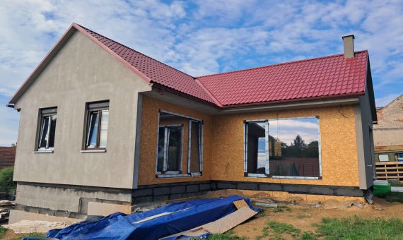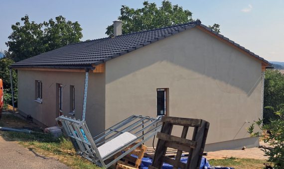 Dispozice domu je 4+kk na 104m2 + garáž 44m2.