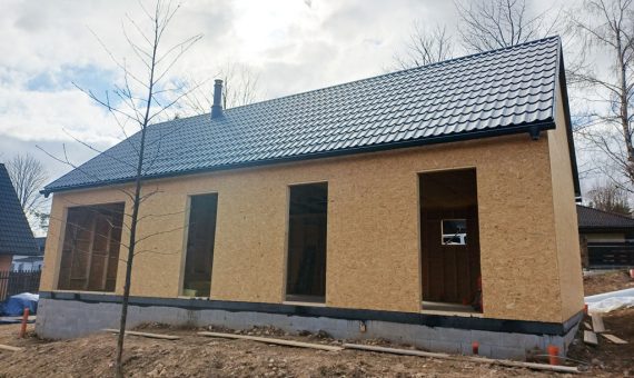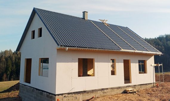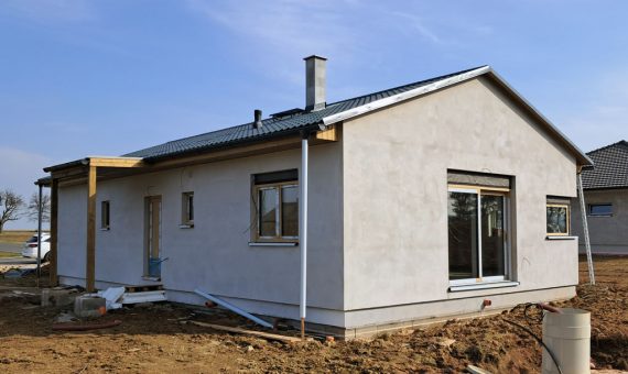 Dispozice domu je 3+kk na zastavěné ploše 87,8 m2.