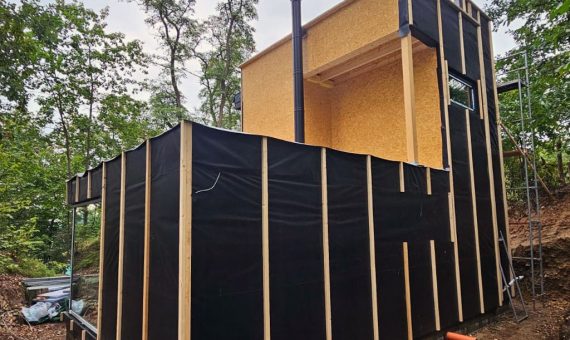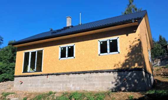 Dispozice domu je 2+kk na zastavěné ploše 55 m2.
