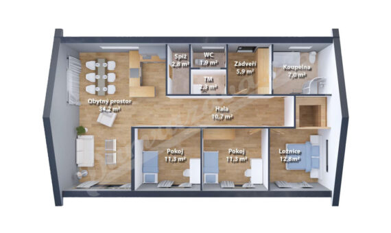 Nízkoenergetická dřevostavba Bungalov 12 (4+kk)