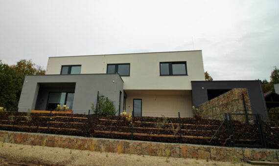 Dispozice domu je 2x 5kk na zastavěné ploše 120,4 m2.