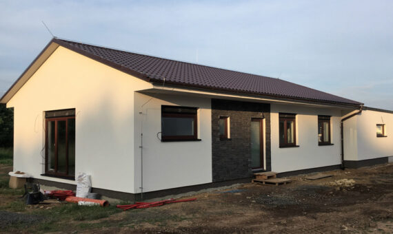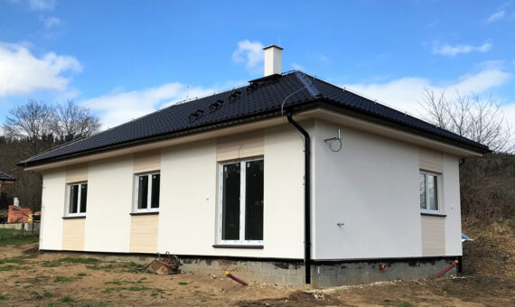 Dispozice domu je 4kk na zastavěné ploše 80 m2.