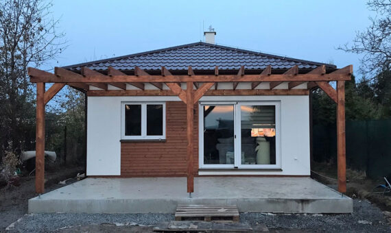Dispozice domu je 2kk na zastavěné ploše 50 m2.
