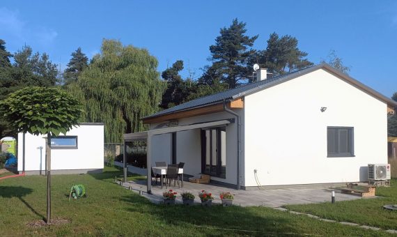 Dispozice domu je 2x 2kk na zastavěné ploše 82,5 m2.