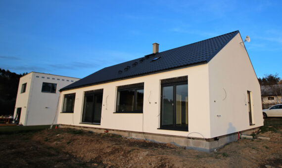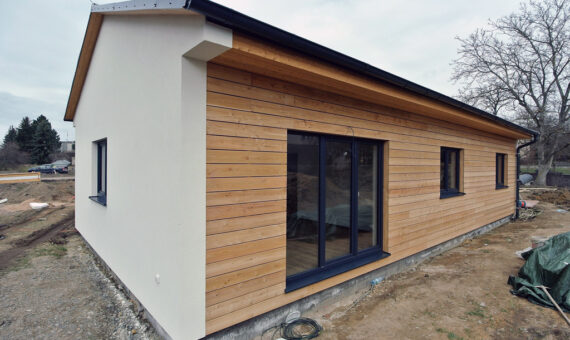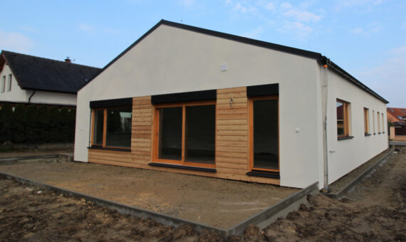 Dispozice domu je 3kk na zastavěné ploše 100,6 m2.