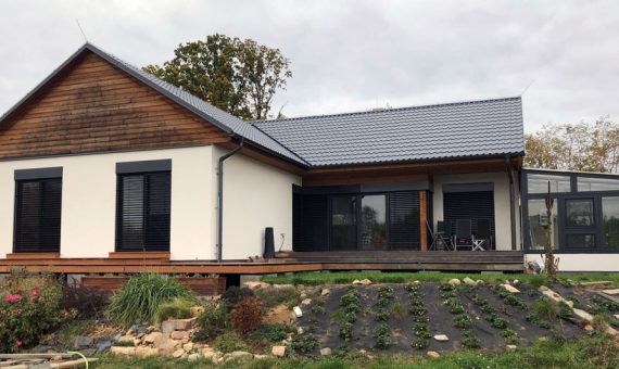 Dispozice domu je 6kk na zastavěné ploše 120,4 m2.