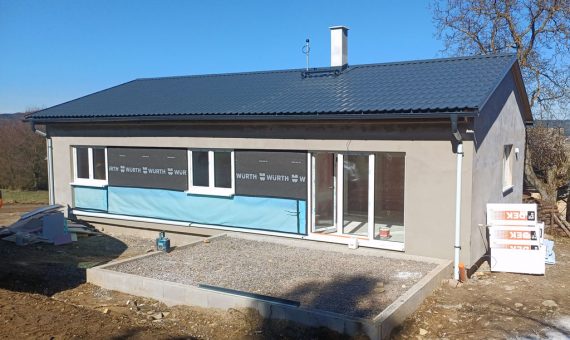 Dispozice domu je 4+kk na 104m2 + garáž 44m2.