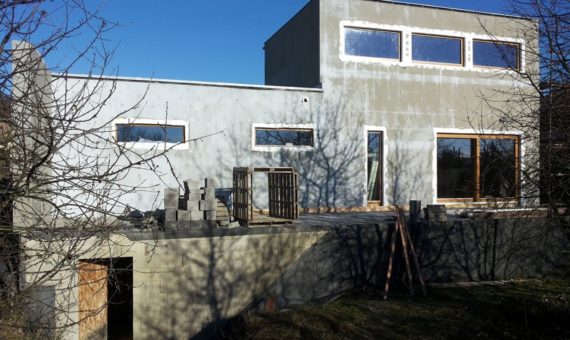 Atypický dům Statenice – 2014 Atypický dům Statenice Dispozice domu je 4+kk na zastavěné ploše 125,4 m2. zpět