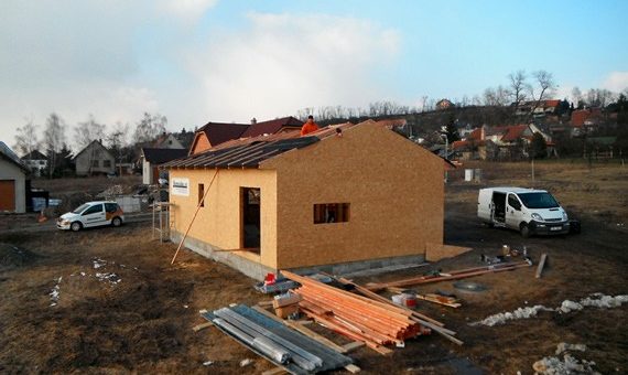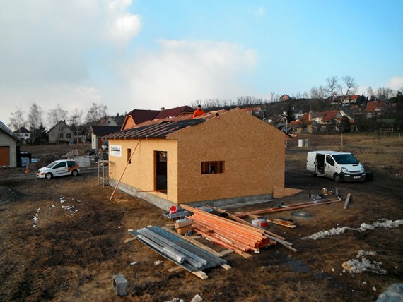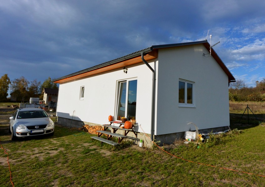 Dispozice domu je 3+kk na zastavěné ploše 65,3 m2.