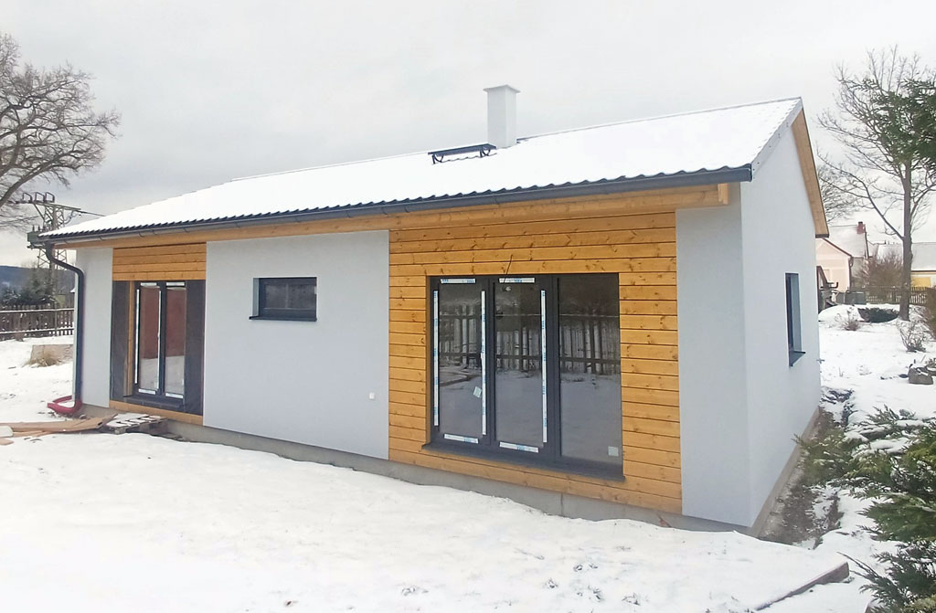 Bungalov 7 – Dobroše – 2024 Bungalov 7 – Dobroše – 2024 Dispozice domu je 3+kk na zastavěné ploše 93,9 m2. zpět