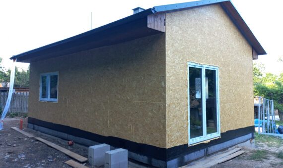 Dispozice domu je 2+kk na zastavěné ploše 49,7 m2.